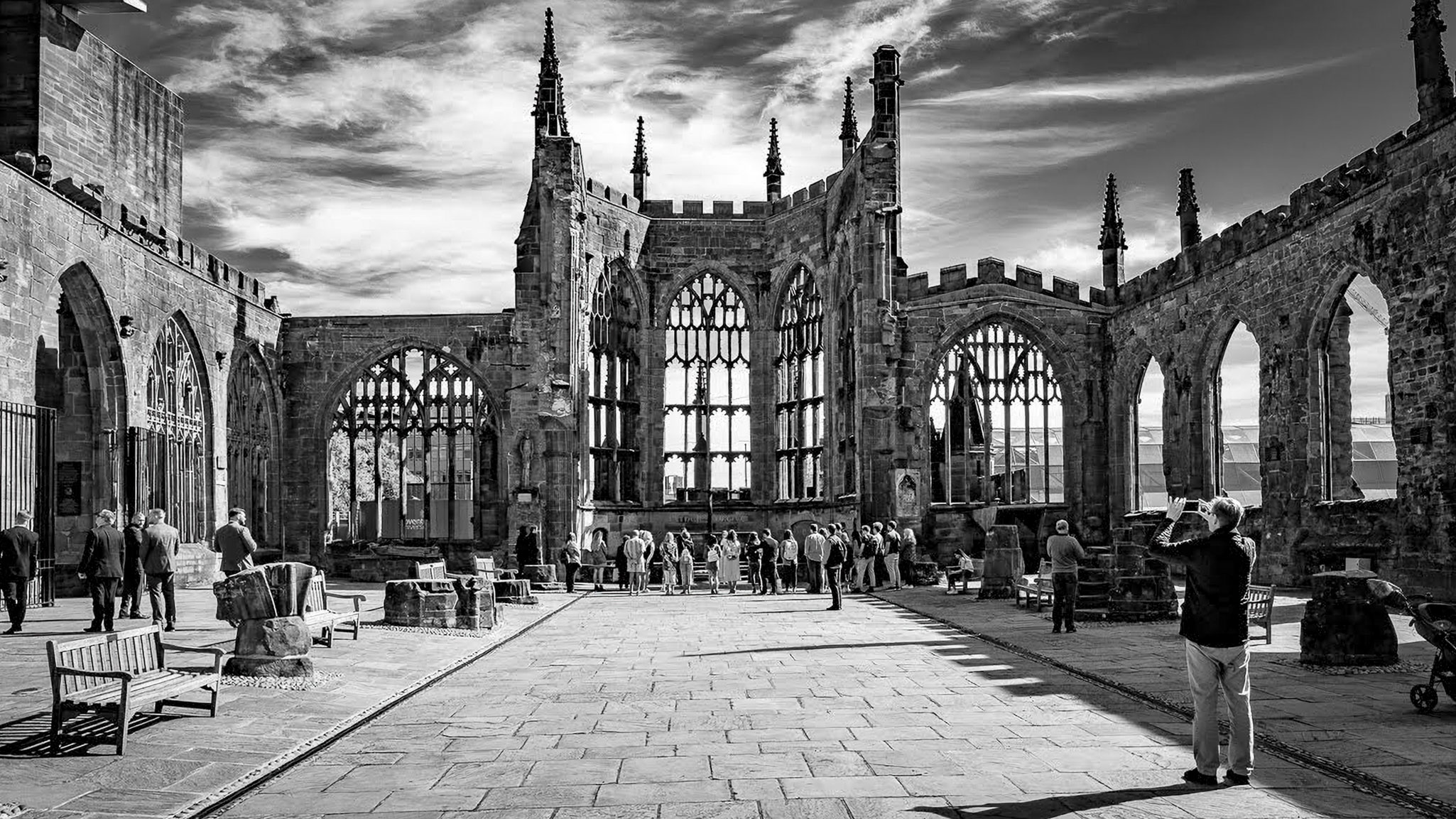 - 🏢 Central Landmark: Coventry Cathedral Ruins (St Michael’s Cathedral), standing alongside the modern Coventry Cathedral.