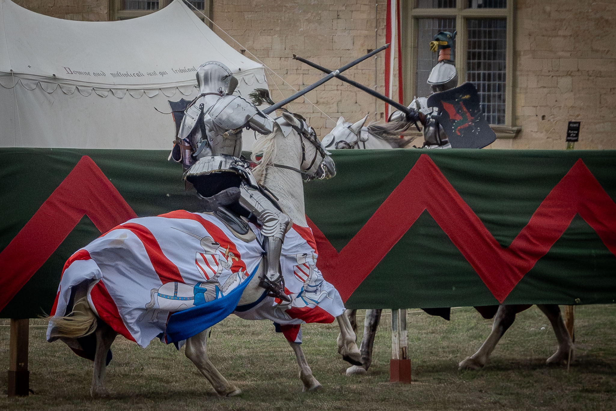 When the horns sounded, everything exploded into motion. Horses thundered across the ground at full gallop, earth shaking beneath their hooves as lances were driven forward with brutal intent. The impact was violent. Wood shattered. Armour screamed. Crowds roared. In seconds, glory was won or stripped away.