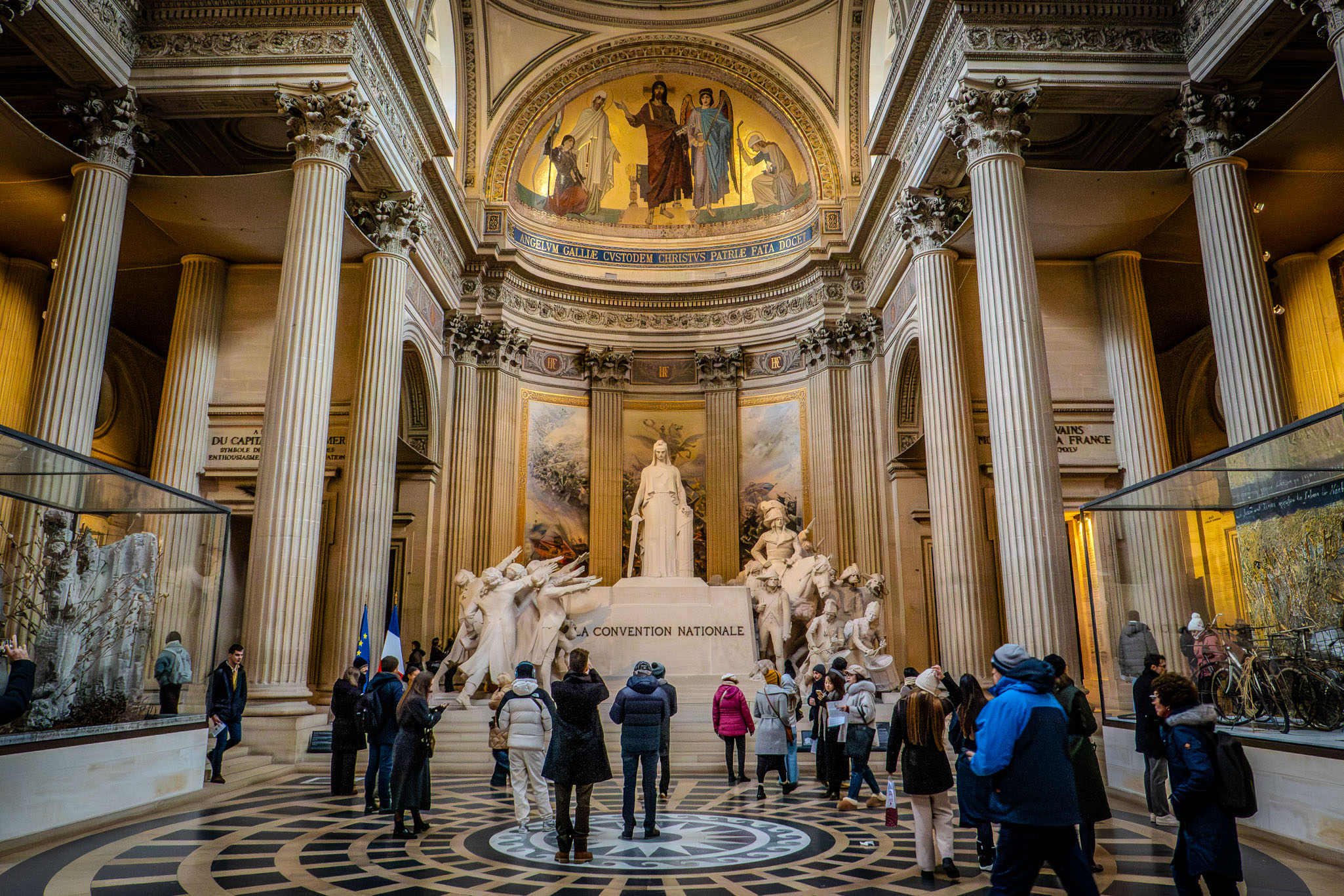 The Panthéon sits high on Montagne Sainte-Geneviève and makes an impact long before you reach the entrance. The neoclassical façade is imposing and unapologetically grand. Inside, the scale is immediately apparent — high vaults, vast murals, and a sense of space that demands attention rather than decoration.