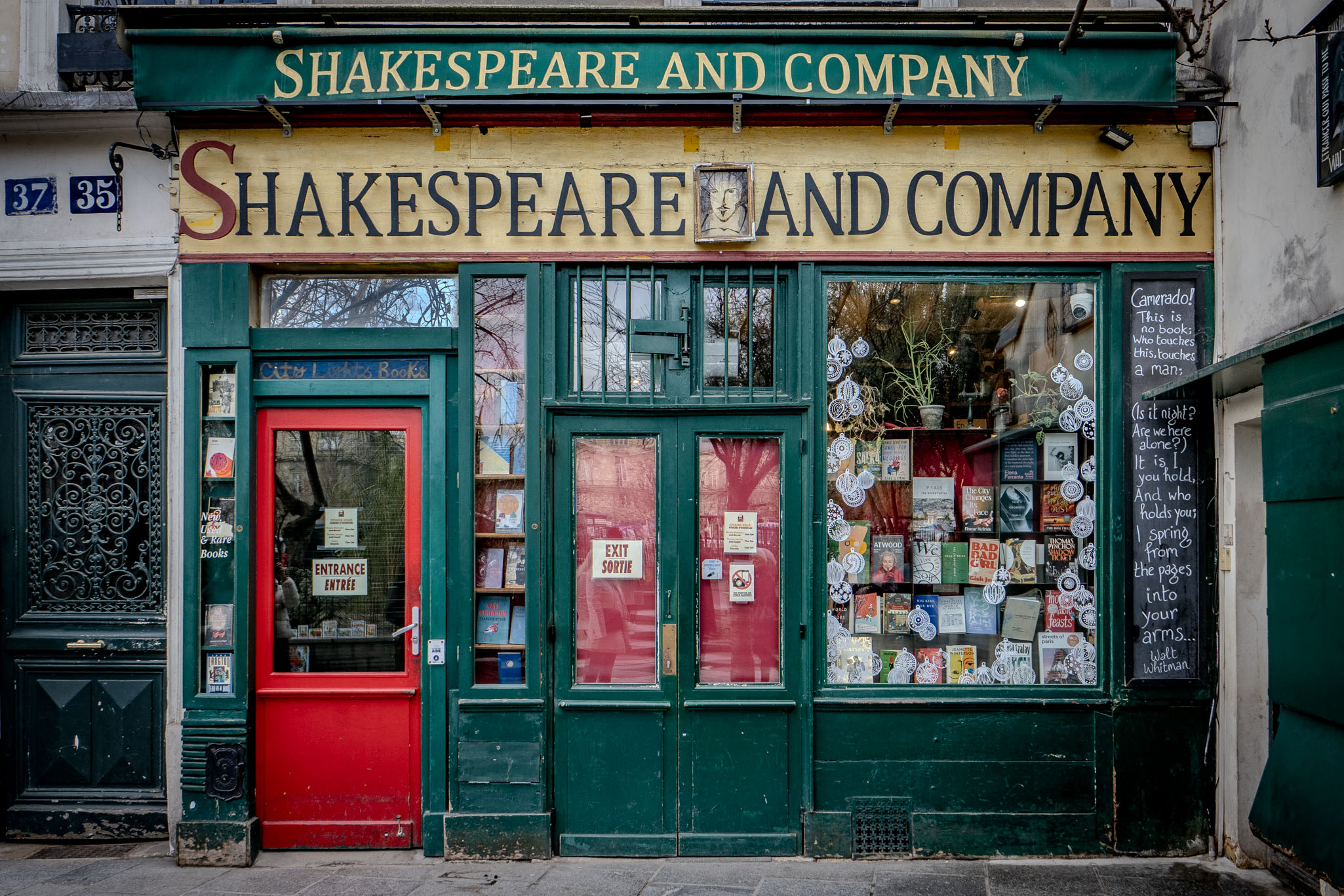 Next door to the café is Shakespeare and Company, the legendary bookshop linked to writers including James Joyce and Ernest Hemingway, and a long-standing pilgrimage site for readers.